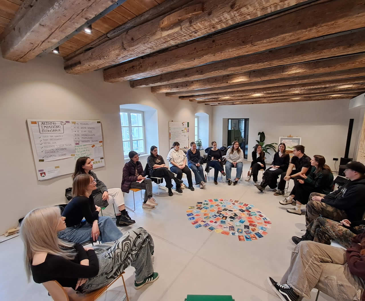 Drugi del usposabljanja sta izvedli kolegici iz Centra za pomoč mladim, ki so sicer tudi naši strateški partnerji, predvsem pa sodelujemo v tretjem nadstropju BAZE, kjer je poudarek na duševnem zdravju in celostnem dobrem počutju. Vodili sta delavnico na temo komunikacijskih veščin pri delu z mladimi. Udeleženci so se spoznali z osnovami komunikacije, pomenom ustvarjanja varnega prostora, tehnikami za prebijanje ledu ter pristopi, kako začeti pogovor z mlado osebo. Delavnica je bila interaktivna in praktično naravnana ter je udeležencem ponudila konkretna orodja za delo na terenu.